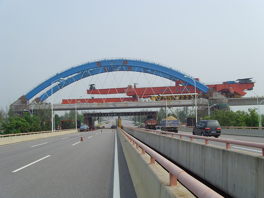 Passing through the tied-arch bridge